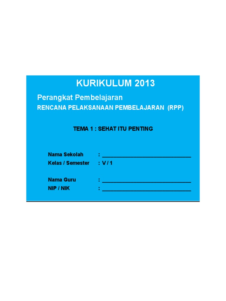 Rencana pelaksanaan pembelajaran (rpp) adalah rencana kegiatan pembelajaran tatap muka untuk satu pertemuan atau lebih. Mengidentifikasi fungsi organ tubuh manusia dan hewan. Administrasi rencana pelaksanaan pembelajaran lengkap ini tidaklah bisa sepenuhnya menunjang keberhasilan penguasaan materi peserta didik, sebab ada banyak faktor yang perlu diperhatikan. Kebetulan rpp k13 kelas 5 tema 1 untuk semester 1 dengan materi pokok organ gerak hewan dan manusia revisi 2019 ini sudah mengalami perbaikan dari tahun sebelumnya, maka dari itu bapak/ibu guru harus segera memilikinya. Rpp 1 lembar kelas 4 semester 1 2020 (unduh) rpp 1 lembar kelas 6 semester 1 2020 (unduh) rpp moda daring, luring, dan kombinasi sd masa posting komentar untuk unduh rpp k13 kelas 5 semester 1 revisi 2020 gratis. By devina mutia azzahra mei 09, 2017 4 comments. Download file format.docx microsoft word. 5 ( lima )/i i (dua). Rpp kelas 5 semester 1. Pendidikankewarganegaraan kelas / semester : Rpp ips kelas 5 semester 1. Sebab pada dasarnya, kini guru dibebaskan untuk membuat rpp k13 sesuai kebutuhan unduh contoh lengkapnya di: 33 full pdfs related to this paper.